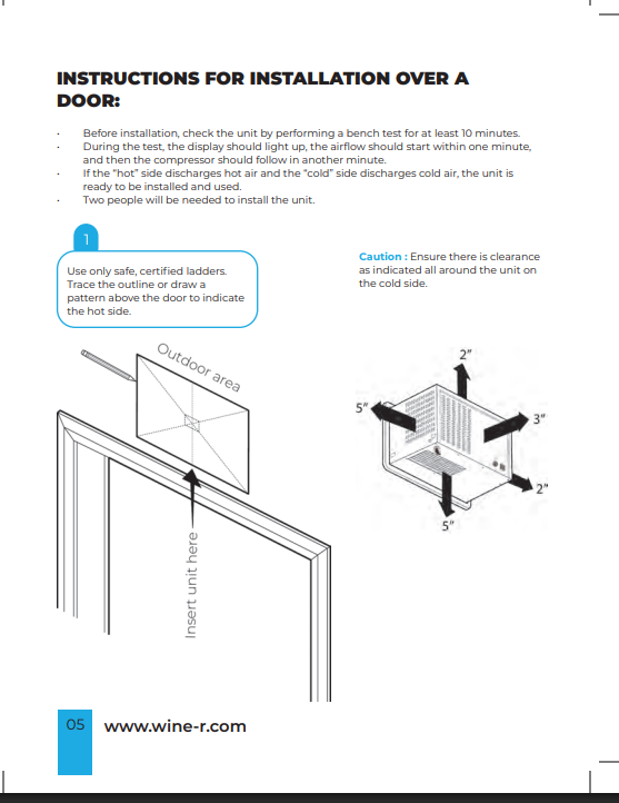 Wine-R2 Wine Cellar Cooling Unit Wine-R2 Wine Cellar Cooling Unit, cools up to 900 Cubic Feet. Two years Warranty. Made in Canada. SKU: WR25 Free shipping $2,569.00 Qty: Add to cart Custom wishlist OK Add to wishlist Add to compare list Email a friend THE NEW GENERATION OF WINE CELLAR AIR CONDITIONERSWe are pleased to announce the arrival of the new generation of wine cellar air conditioners, the Wine-R V2.Wine-R's mission is to offer your customers the best value in entry-level air conditioners on the market. Our Quebec-based customer service allows the Wine-R team to respond more quickly to any problems that may arise.Designed & engineered in Quebec, the Wine-R team has worked over the past 18 months to improve the first version to offer you a unit that, thanks to the quality of its components and built to our Canadian standards, will last over time.Powerful and compact, the Wine-R V2 cooler easily replaces the KoolR-type air conditioners currently on the market. At 48 decibels, it's one of the quietest air conditioners in the industry.Specifications:Capacity: Cools up to 900 Cubic Feet.Height: 8" 3/4 (223mm)Wide: 15" 3/8 (390mm)Depth: 16"1/4 (412mm)Weight: 45lbs (21kg)Thermostat: Options: On/Off // Temp+ Temp- // FanTemperature:10 - 25 °C / 50 - 77 °FCable length: 5'Evaporator and condenser: Fan motor: 25 W, Airflow: 120 CFMCompressor power: 0.20 HPRefrigerant:134 AElectricity Capacity:120/60/1Power: 330WCircuit:12ANoise Decibel: Db(A) ModeratePart Warranty: 2 years with the man ufacturerUtilisation: Recommended for cellars with R20 insulation or higherNEW FEATURES ON WINE-R V2AESTHETIC IMPROVEMENTS:EXTERIOR FINISH: We've improved the finish, for a more homogeneous look.NEW GENERATION THERMOSTAT: The new control makes the unit more progressive and gives it a more aesthetic appearance.GRID AND CASING SCREW SEPARATION: To prevent damage to the unit, we've introduced new screws that attach only the unit to the machine, while the others secure the grill.TECHNICAL IMPROVEMENTS:HEATING PANEL: We introduce the heating panel to reduce the amount of water to be drained and recover natural humidification in the cellar.EVAPORATOR: We've quadrupled the thickness of the evaporator, extending the unit's life by preventing long-term gas leaks.FAN MOTOR: Noise remains as low as 48 dB. One of the lowest cellar air conditioners in its class.ELECTRONIC CONTROL: Reduced size of internal unit controls.PROBE: The probe is now protected by a wire mesh and the reading is more stable and less sensitive.THERMOSTAT: The unit displays a reading difference of 2 degrees.INSULATION: We've reinforced the insulation to prevent any loss of coolness.